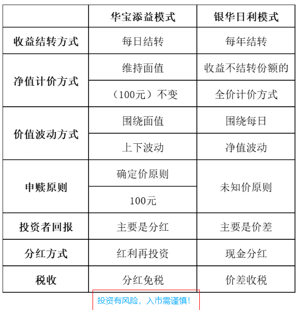 货币ETF主要分为两个类别,分别是华宝添益模式和银华日利模式。二者在收益结转方式、净值计价方式以及价值波动方式等方面有着较大的区别。