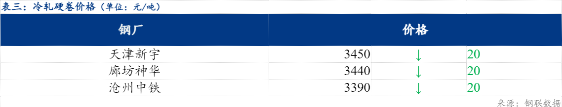 3、以上冷轧硬卷廊坊神华规格为0.27mm,其余为0.35mm;