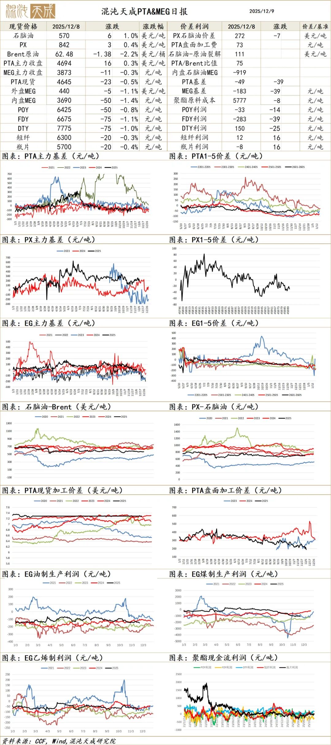 供应端:隆众数据,截止12.5日,开工率65.4%(2.7%),煤头检修增多,但仍偏高水平;累库加速中。煤头边际成本预计3600-3800元/吨。MEG随着11月裕龙投产后累库加速,且明年将持续投产,增速10%左右,格局转过剩。