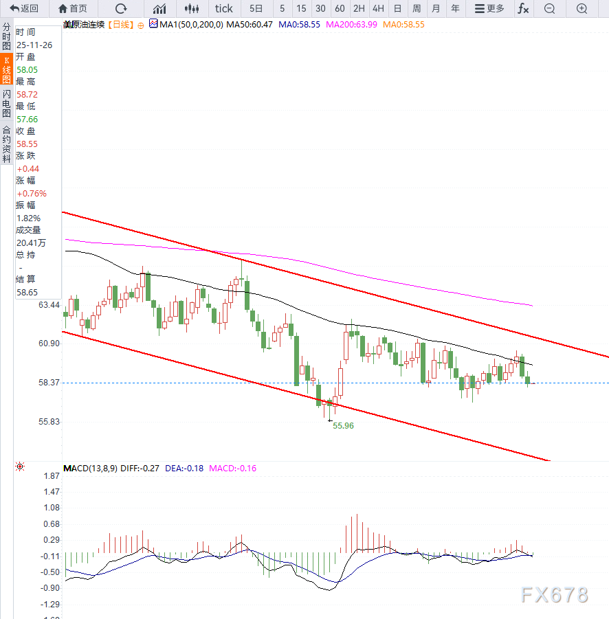 汇通财经APP讯——WTI原油在周三亚洲时段交投于58.40美元附近,市场情绪在强劲美元与供应恢复的双重压力下趋于谨慎。