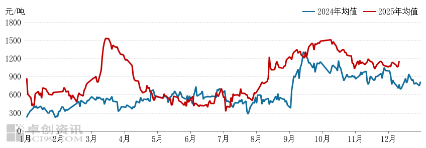 本周菜粕均价较上周小幅下跌。周内菜粕现货价格先跌后涨,均价重心环比下移。澳大利亚油菜籽暂定12月下旬启动压榨,菜粕供应增量预期带来下行压力,现货价格小幅回落。市场消息关于进口大豆通关收紧影响带动购销情绪升温,菜粕进口贸易商小幅上调报价,广东零星油厂预售2026年1-3月澳粕合同,基差价格不断走高。养殖需求正值淡季,下游用户询采谨慎,部分保持按需零星采购节奏。截至今日收盘,全国36%蛋白菜粕周度均价为2531元/吨,较上周均价2556元/吨下跌25元/吨,跌幅0.98%。