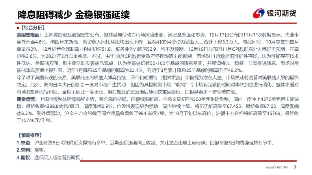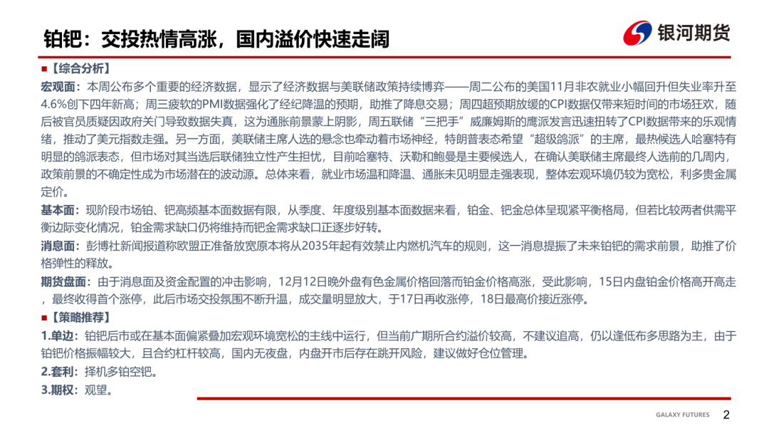 【贵金属系周报】金银:降息阻碍减少金稳银强延续;铂钯:铂钯交易热情高涨,连创上市以来新高