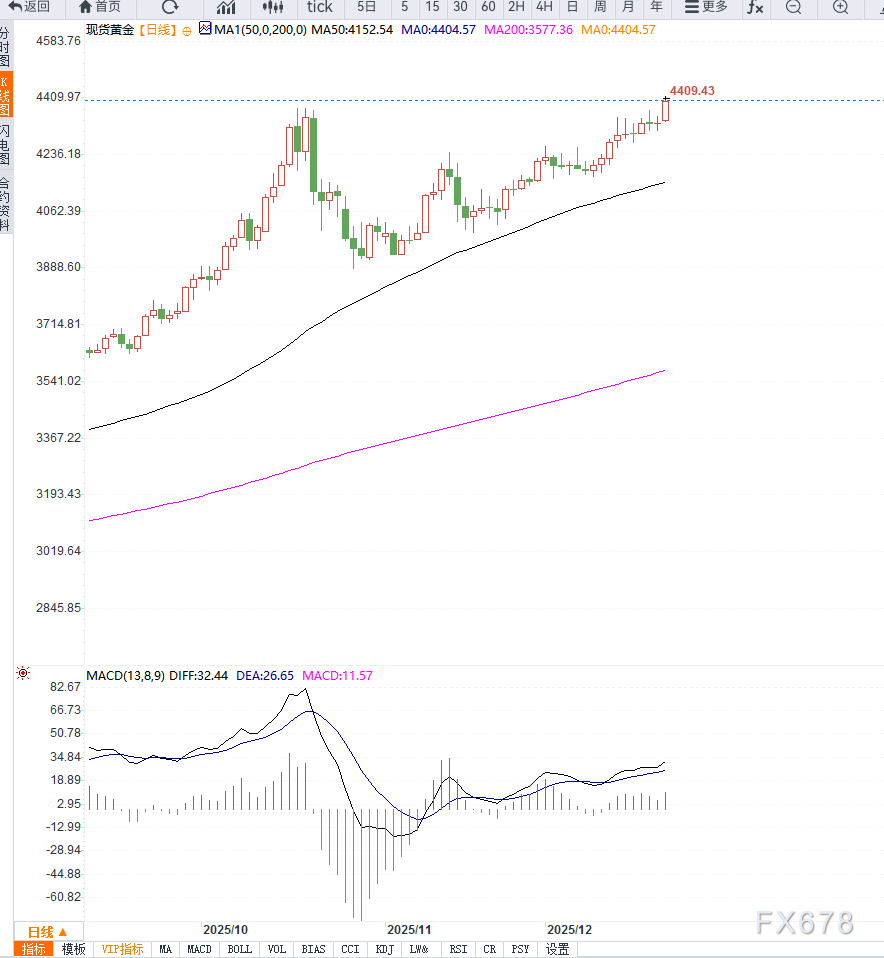 与此同时,全球避险情绪持续发酵。中东地区紧张局势尚未缓解,美国与委内瑞拉之间的摩擦也不断升级,市场对地缘不确定性的担忧推动资金持续流向黄金等保值资产。
