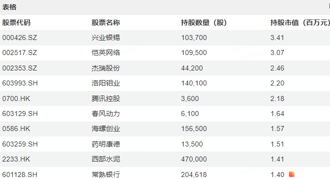 招商瑞泰(012965)前十大重仓股票(按市值排序)