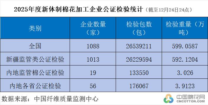 2025年度新体制棉花加工企业公证检验统计(12月24日)