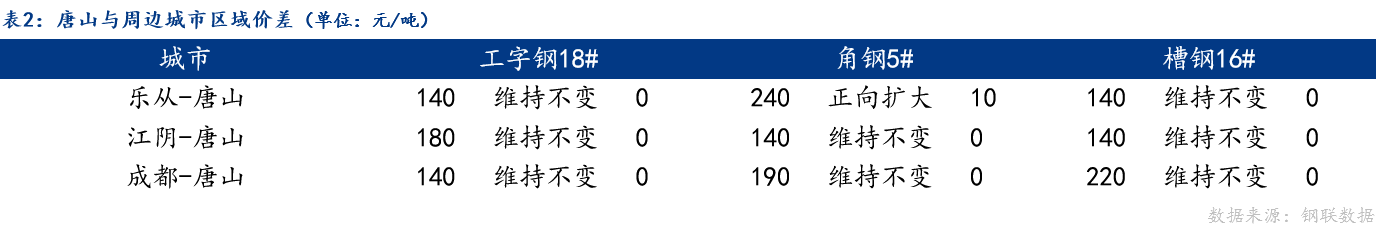 从区域价差来看,乐从角钢与唐山角钢价差正向扩大;