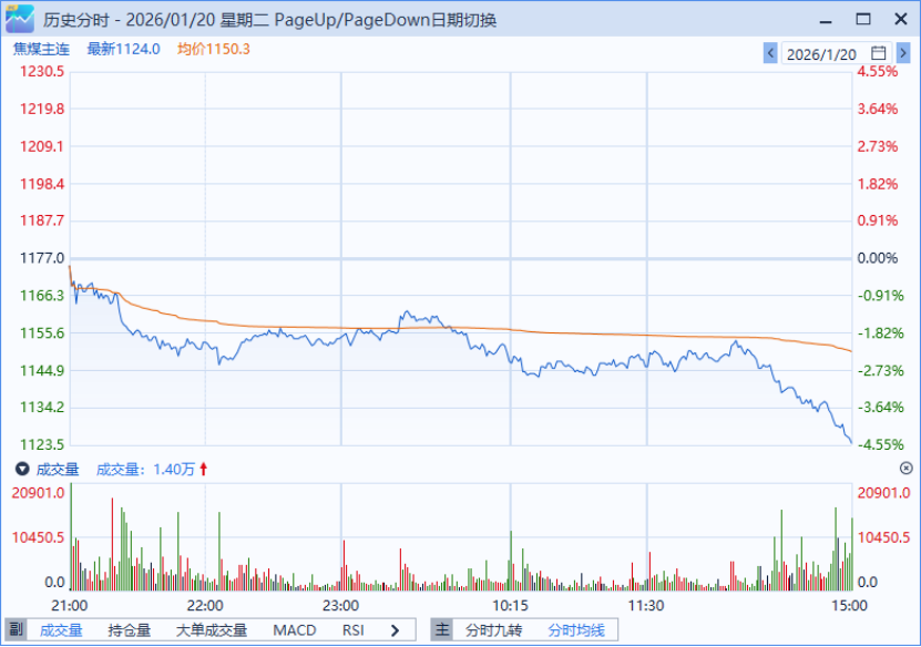 今日,焦煤期货主力合约JM2605开盘1,175元/吨,冲至日内高点1,176元/吨后快速回落。