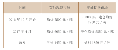 该案例中上海佰融公司经过决策,制定了卖出菜油1705合约进行保值的策略。