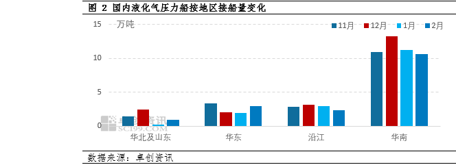 3月国内压力船装船量或维持低位,而若中东冲突持续时间较长,不排除进一步下降可能。