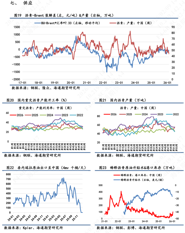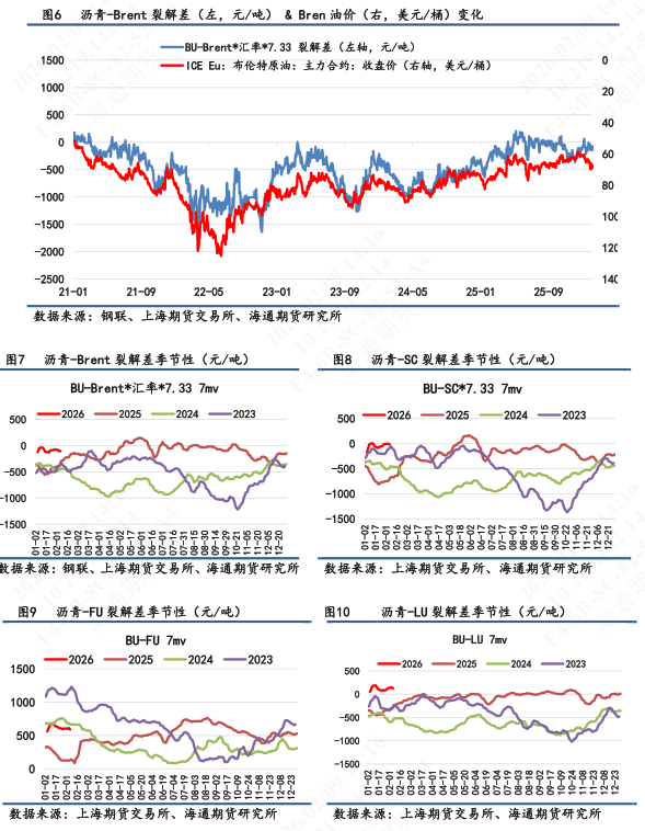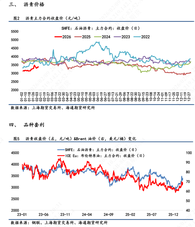 【3】短期展望:接近国内春节过年,现货市场波动不大,相对平稳,高低端价格维持坚挺。盘面价格主要还是受地缘变化和市场风险偏好影响。美伊地缘来看,美国海事局发布航行警告,要求美旗商船在霍尔木兹海峡、阿曼湾远离伊朗领海,遇登船要求可拒绝。美伊谈判反复,局势仍具有高度不确定性。短期地缘因素影响成本端,成为沥青盘面走势的重要扰动项。地缘演绎下能源类品种依旧面临较大波动,谨慎控仓,持续关注地缘演绎。