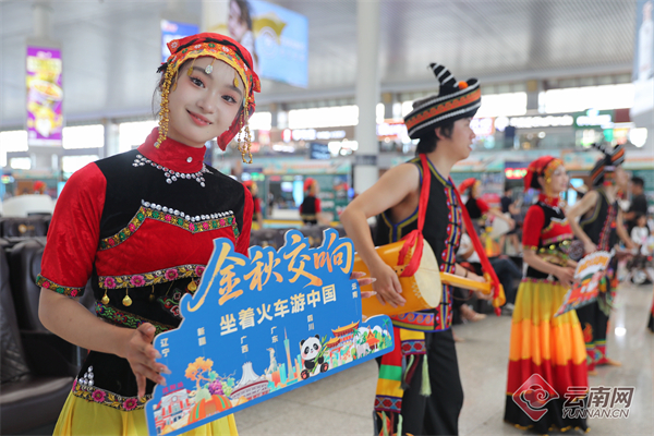 云南网讯(记者 夏方海)8月28日,在云南省委宣传部和云南省文化和旅游厅大力指导下,由中国铁路昆明局集团有限公司(以下简称:国铁昆明局)携手国铁沈阳局、广州局、南宁局、成都局、乌鲁木齐局及地方文旅部门,共同举办的“金秋交响•坐着火车游中国”大型旅游推介活动在昆明启动。