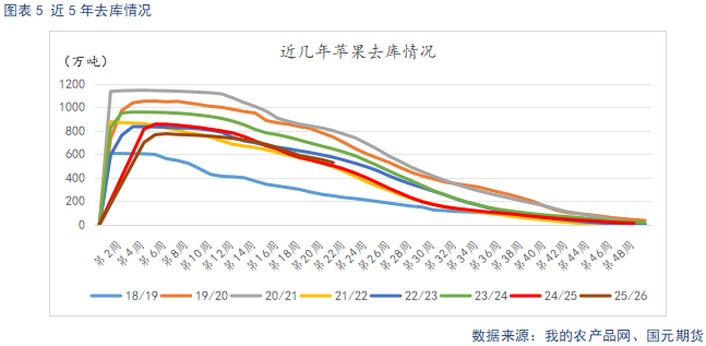 随着社会发展水平的提高,居民对水果品类的选择日趋多样化,稀释了苹果单品消费的能力。而苹果受时令水果的替代性较强。其中柑橘类、梨的生长周期与苹果相近,和苹果的替代关系最强。据我的农产品网统计,截至2026年2月27日,全国鸭梨批发均价为6.69元/公斤,较前一周环比上涨0.18元/公斤。砂糖橘批发均价为6.1元/公斤,较前一周环比下跌0.04元/公斤。梨、柑橘市场价整体窄幅波动。梨主流冷库货预计3月中下旬全面退市。柑橘则呈梯队式退市,中早熟品种在3月中旬进入供应尾期,3月将成为梨与中早熟柑橘集中退市的关键节点,随着3月梨和早熟柑橘逐步退出市场,夏季水果还未集中上市,时令水果将迎来供应空窗期,对苹果的替代效应将逐步减弱,有利于加快库存消化。