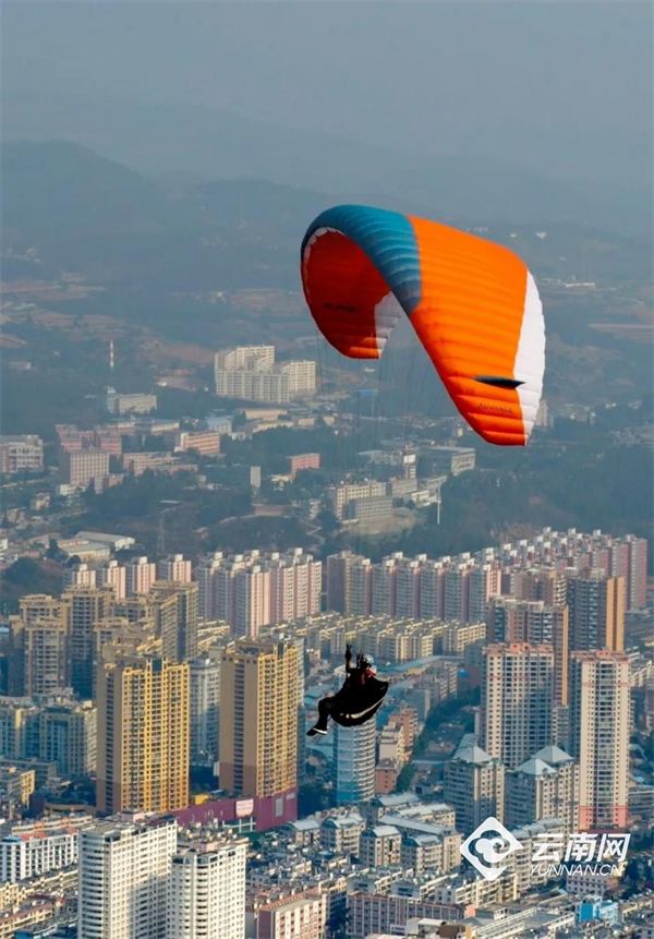 令人心跳加速的体验不止凌空的玻璃栈道,在老阴山还能“插上翅膀”翱翔——从山上起飞点一跃而下,体验滑翔伞带来的极致快感。腾空而起的瞬间,整个世界在脚下豁然开朗,耳畔是呼啸的山风,眼前是绵延的群山,个旧城区如同一幅立体沙盘在身下徐徐展开,这一刻,将充分感受“会当凌绝顶”的豪迈与自由。