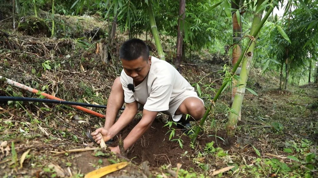 清晨的薄雾还未散尽,刀董村上五组的村民鲍赛客已经在水果竹笋基地里忙碌着。他挥动锄头,一根根鲜嫩的竹笋被收入囊中。这些“金疙瘩”一样的宝贝,正在给这个佤族家庭带来源源不断的财富。