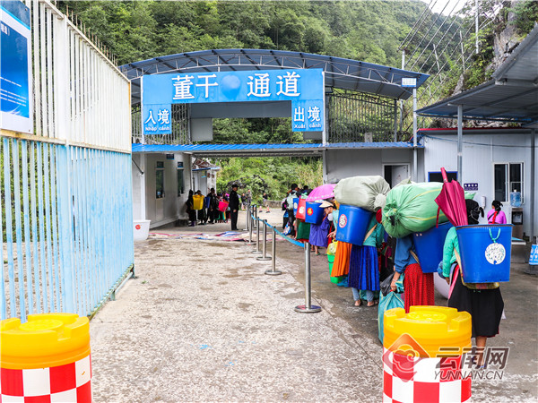 清晨的薄雾还未散尽,云南省文山州麻栗坡县董干通道的验证方舱外已排起了长队。中越边民手提布袋、肩挎竹篮,笑着用双语打招呼,等待通关——这样充满烟火气的场景,自董干通道复通两年来,每天都在这里上演。