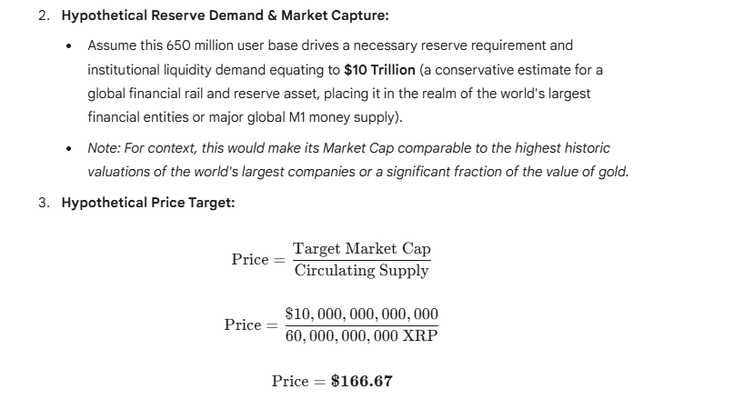 如果这种程度的采用能够使 XRP 的市值达到 10 万亿美元,与世界最大的金融机构的市值相当,Gemini 估计,根据 XRP 600 亿的流通供应量,其价格可能会达到每个代币 166.67 美元左右。
