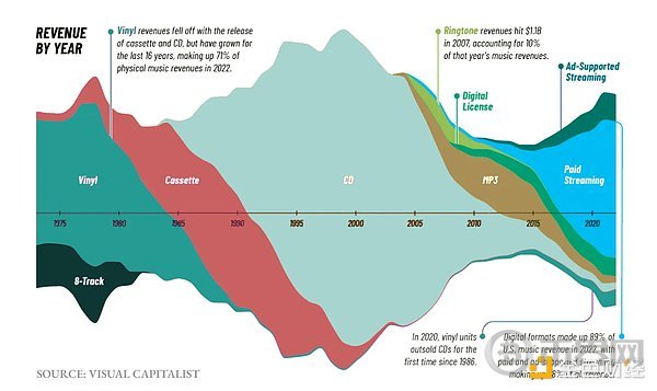 单曲化提升了音乐的发现效率,但也侵蚀了收入 —— 大多数粉丝只购买热门歌曲,而非 10 首填充曲目,导致许多艺术家的人均收入下降。