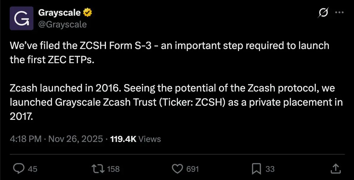 “>山寨币战略方面,Solana、XRP 和 Dogecoin 的相关文件也已准备就绪。如果这只ETF成功上线,它有望引入真正的机构资本,并提升市场稳定性。如果Zcash能够通过美国证券交易委员会(SEC)的审批,它或许最终能够从利基市场走向主流市场。