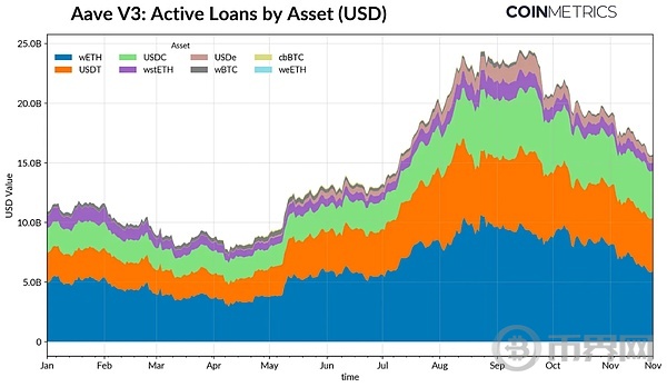 ETH 类借贷也同步收缩,WETH 与 LST 相关贷款减少 35–40%,显示循环杠杆与收益策略大幅退出。