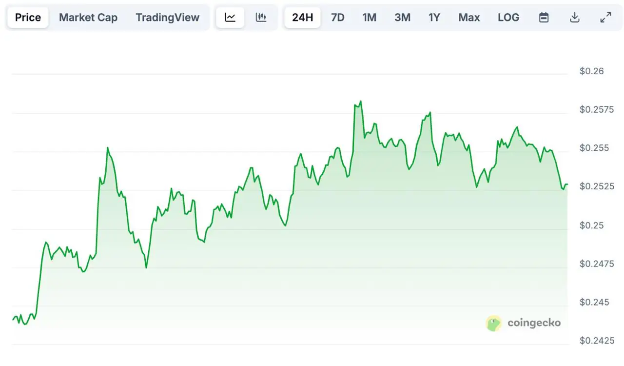 据 CoinGecko 数据显示,PI 在过去 24 小时内短暂突破 0.25 美元,随后稳定在该水平下方。该资产日线图上涨 4%,过去两周上涨 12%。此举推动 PI 代币市值重回 20 亿美元以上,跻身全球市值最高的 61 种加密货币之列,并超越了 PEPE 等网络迷因币。