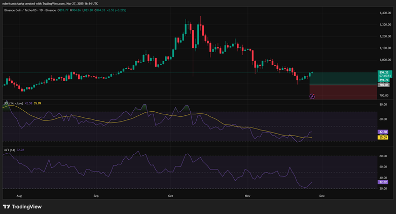 截至发稿时,该加密货币的交易价格为 894.9 美元,比上周的最低价格上涨了 12% 以上。
