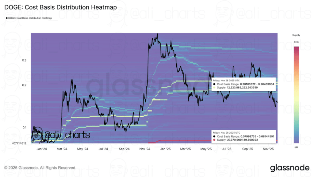 狗狗币关键价格水平。来源:@ali_charts On X