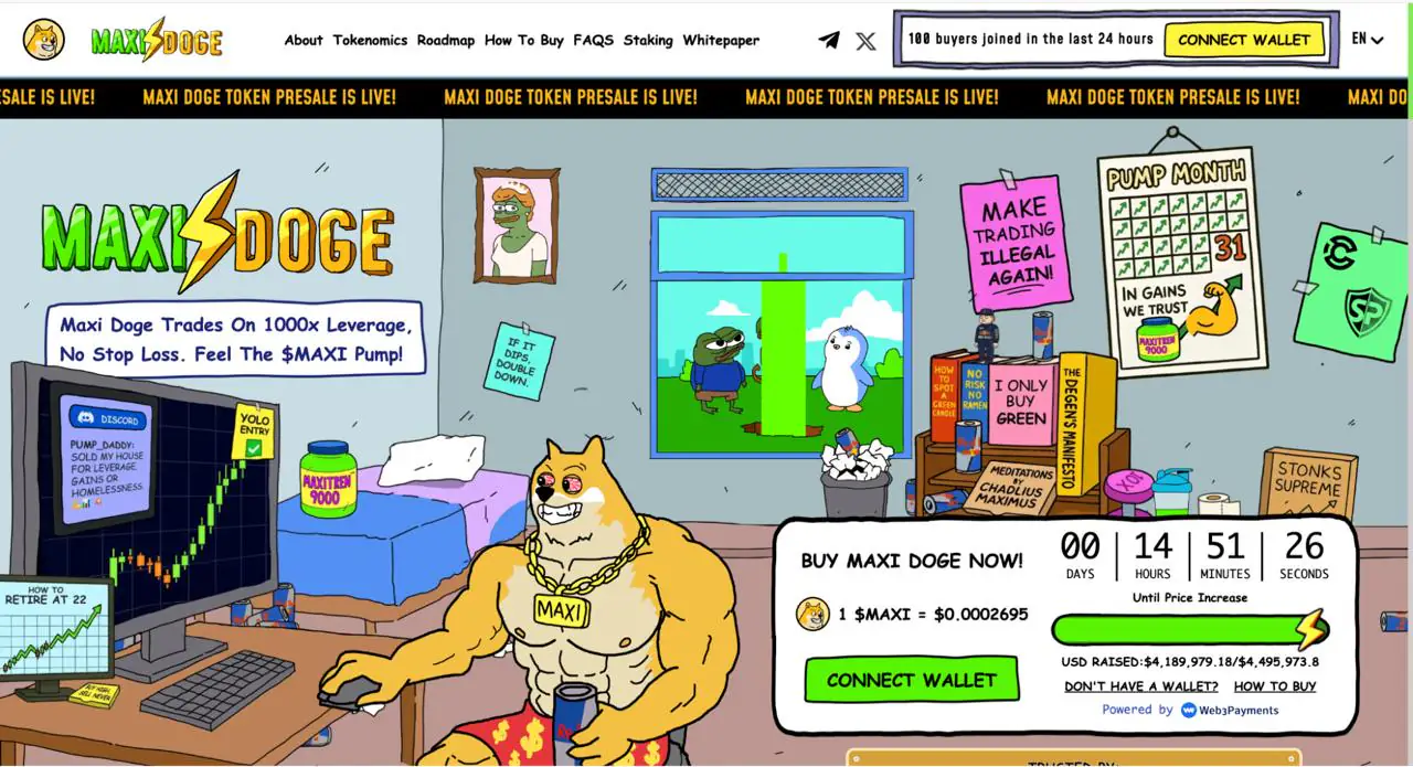 | MaxiDoge | 418万美元以上 | 高能量模因代币 | 社区驱动文化 |