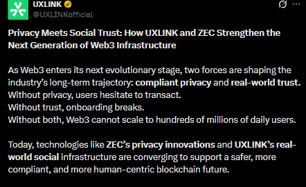 UXLINK 是一个Web3平台它为企业和开发者提供构建去中心化应用和基于区块链的服务所需的工具。此次合作将 Zcash 的隐私功能引入到这一基础设施中。