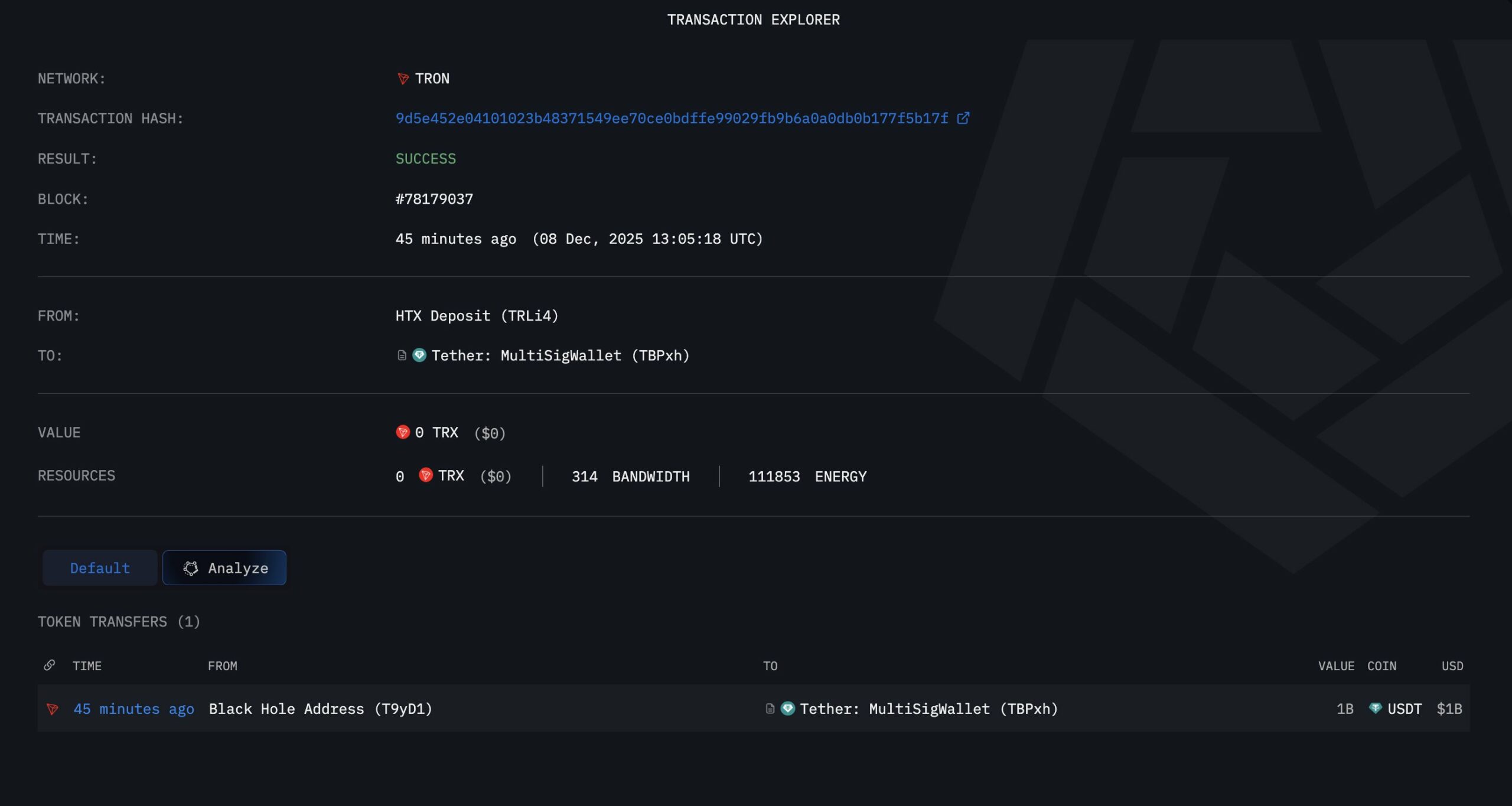 阿卡姆情报部门报告代币从协议的“黑洞”地址转移到 Tether 的多重签名钱包,这是该公司为交易所和机构客户补充流动性的标准流程。