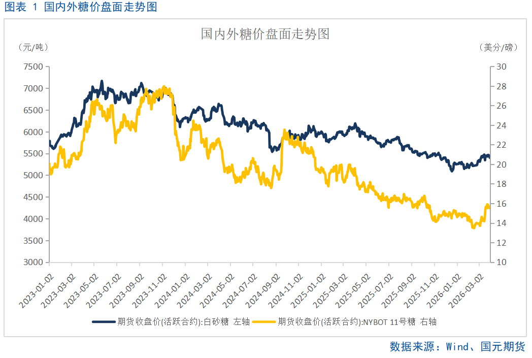 国外供需格局:中性。1)据印度全国合作糖厂联合会(NFCSF)数据,截至3月31日,印度2025/26榨季剩余开榨糖厂74家,同比减少39家;累计产糖2712万吨,同比增加225.5万吨;平均出糖率为9.56%,同比提高0.19%。其中,马哈拉施特拉邦累计产糖989.5万吨,同比增加188.5万吨,平均出糖率为9.50%。2)2025/26榨季截至3月上半月,巴西中南部地区累计产糖量为4025万吨,较去年同期的3996.8万吨增加28.2万吨,同比增幅达0.71%