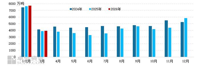一季度中国煤炭进口量增长受限主要受三方面因素影响,具体来看:其一,作为中国煤炭进口最主要的贸易伙伴--印度尼西亚,自2025年11月份以来,宣布在2026年将执行下调煤炭产量计划、提升国内DMO比例、增加煤炭出口关税等策略,煤炭出口预期明显受限,印尼主流煤矿在2026年一季度优先兑现国内DMO义务,影响对外煤炭出口积极性,同时一季度恰逢印尼雨季及斋月活动,煤矿生产及发运稳定性均有受限,影响印尼煤炭外运;其二,一季度以来,受国际地缘局势紧张影响,国际煤价整体处于高位,进口煤价格不具备优势,阶段性较同热值内贸煤价格形成明显倒挂,国内用煤企业对高价进口煤接受度有限,进口煤采购积极性下滑,据卓创资讯统计数据显示,一季度进口印尼Q3800大卡动力煤较同热值内贸煤价格平均价格优势为0.38元/吨,2月中旬进口煤较内贸煤最高倒挂幅度在35元/吨左右,国内用煤企业煤炭采购需求向内贸煤倾斜,2026年以来,华南沿海地区内贸煤交易活跃度明显提升,进口煤交投活跃度下降。