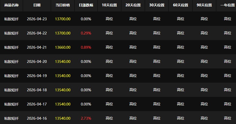 本周(2026年4月19—24日)国内1.2D粘胶短纤市场呈现“先稳后涨、高位持稳”的偏强运行格局: