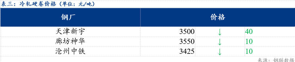 今日北方市场冷轧基料3.0*1010*CSPHC河北普阳价格为3270元/吨,较上一期价格下跌30元/吨,河北纵横价格为3250元/吨,较上一期价格下跌30元/吨。镀锌方面,今日北方市场民营钢厂出厂价格部分下跌15-50元/吨;轧硬方面,当前主流报价3425-3550元/吨。市场方面,原料价格继续下跌,现货市场跟跌为主,商家操作多以出货回笼资金为主。