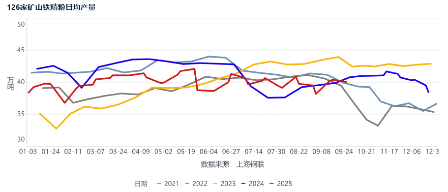 国产矿供应保持稳定,维持在偏低水平。9月以来国内矿山铁精粉产量总体稳定,变化不大。根据上海钢联调研的126家矿山的铁精粉日均产量数据来看:当前日均产量39.7万吨,环比8月份基本持平,同比也基本持平。四季度,受安全生产政策趋严影响,国产铁精粉供应量预计仍将维持低位水平,增长受限。