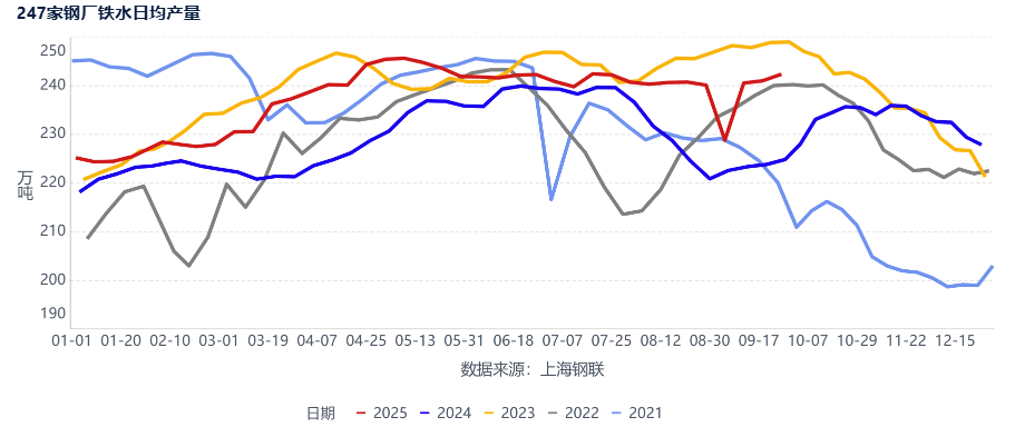 随着盈利状况的持续改善,钢厂生产意愿也持续保持较强状态。在此环境下,铁水产量得以维持在高位水平,铁矿需求保持着较为旺盛的状态。根据上海钢联的调研:当前247家钢厂日均铁水产量为242.4万吨,环比8月底增长2.3万吨,同比增长18.6万吨。四季度,下游需求进入旺季,钢厂利润预计仍将延续改善之势。我们预计10月份铁水产量整体仍将维持在高位水平,铁矿需求有望延续旺盛状态。