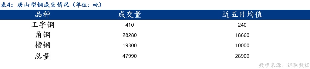2、成交量为20家型钢厂当日成交,其中包括工字钢6家、角钢7家、槽钢7家。