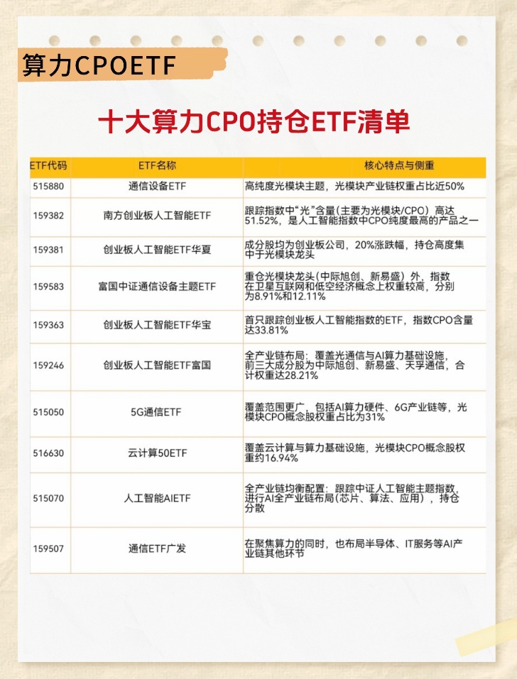#CPO投资 #光模块 #ETF清单 #算力革命#投资干货