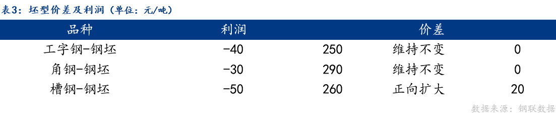从品种价差来看,今日唐山钢坯与工字钢、角钢价差维持不变,与槽钢价差正向扩大。