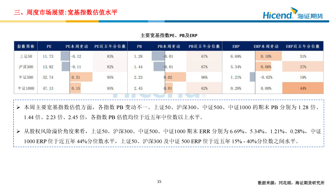 估值角度,各指数PB变动不一。上证50、沪深300、中证500、中证1000的期末PB分别为1.28倍、1.44倍、2.23倍、2.45倍,各指数PB估值均位于近五年中位数以上水平。流动性及资金面,截至本周四,10年期国债到期收益率期末值为1.84%,较上周末下行1BP;1年期国债到期收益率期末值为1.39%,较上周末下行1BP。国债长短期利差与上周末持平。市场流动性环境相对宽松。融资数据方面,截至本周四,融资余额为2.51万亿元,周一到周四融资净买入额为260亿,资金参与情绪持续向好。