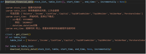 这两个函数都可以下载财务数据,但在参数传递上存在一些差异。然而,根据我对xtquant代码的梳理,发现实际上 download_financial_data() 最终调用的仍是 download_financial_data2()。