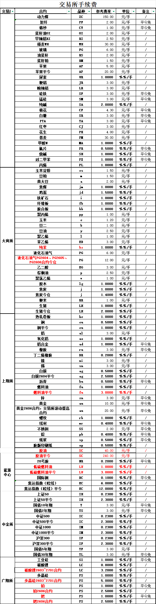 2026年4月更新的期货手续费 = 交易所基础手续费(全国统一) 期货公司加收佣金(可协商)