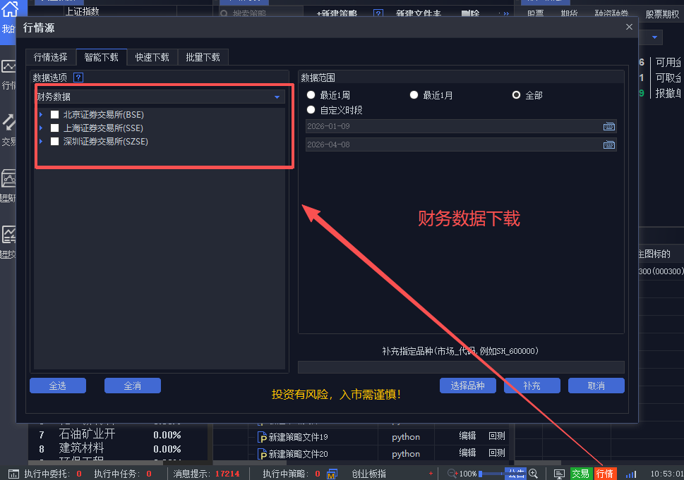 获取财务数据前,请先通过界面端数据管理 - 财务数据下载
