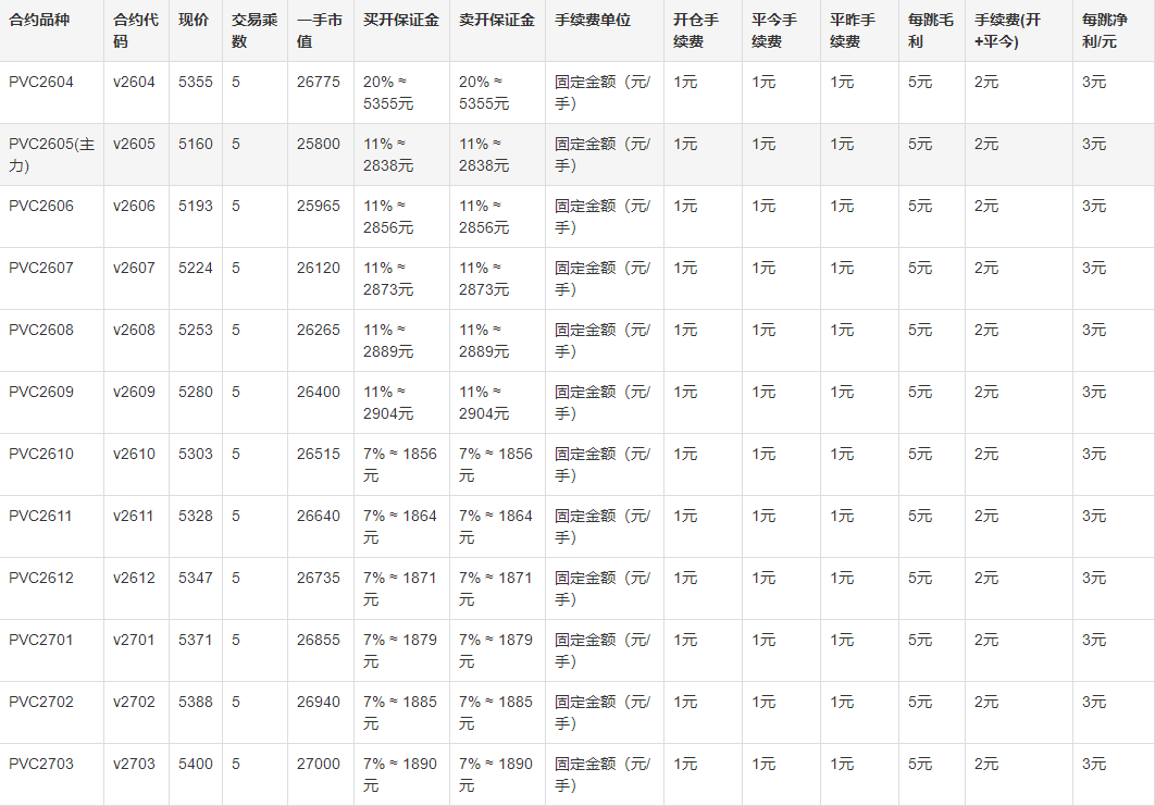 1、PVC期货手续费是固定值,交易所规定全合约为1元/手