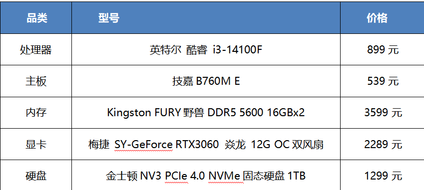 显卡选择了梅捷 SY-GeForce RTX3060 焱龙 12G OC双风扇,虽然这款RTX30系显卡已经是多年以前的产品,但是优势是性价比高,12GB版本搭配英特尔酷睿 i3-14100F处理器,本地大语言模型7B模型速度流畅,13B模型也可以体验一下;Ai绘画高清修复完全没有问题,SDXL 1.0也能运行,虽然速度不如高端显卡,但是效果是一样的。总之,小模型训练完全够用,大模型微调也可以体验。